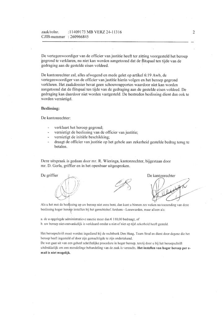 Mijn beroep tegen een boete wegens (iets) sneller rijden dan toegestaan werd gegrond verklaard. Voor het eerst na vele procedures, dus ik kan blij zijn. Maar de motivering is zo vreemd dat het onzeker is of het een precedent schept.